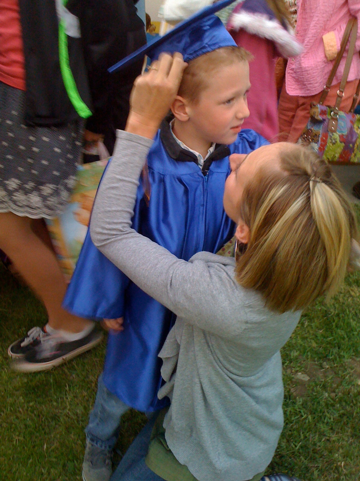 So my face hurt tonight. It hurt because I couldn't stop smiling. Our little guy was amazing at his Pre-K graduation. He was happy, smiling, and excited to be up on stage. While he didn't sing most of the songs, he did try to do most of the motions. He would often catch our attention and give us a HUGE smile. It was sooo wonderful for us to see and to think back a couple years. We probably wouldn't have even had him attend for fear of how he would do. What a little rock star.