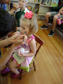 *I know I've said this before, but I really am so thankful for our somewhat po-dunk, small town library. Yesterday they had a pajama party. All the kids came dressed in their p.j.'s with their stuffed animals. They had singing, crafts, face painting, and pictures taken with each child's animal (one of the crafts was a frame for the picture). The kids had such a fun time!
